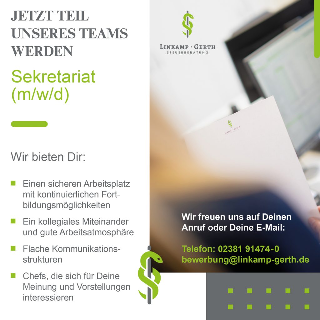 Heute möchten wir den zweiten unserer beiden Gesellschafter vorstellen:Heinz-Ulrich Linkamp Steuerberater und Fachberater für den Heilberufebereich (IFU/ISM gGmbH) 2009 hat Heinz-Ulrich Linkamp eine Kanzlei in Hamm übernommen und ist seitdem selbstständig tätig. Durch den Zusammenschluss der Steuerberatungskanzleien von Heinz-Ulrich Linkamp und Thomas Gerth wurde 2018 der Grundstein für die heutige Linkamp • Gerth Steuerberatung gelegt. […]